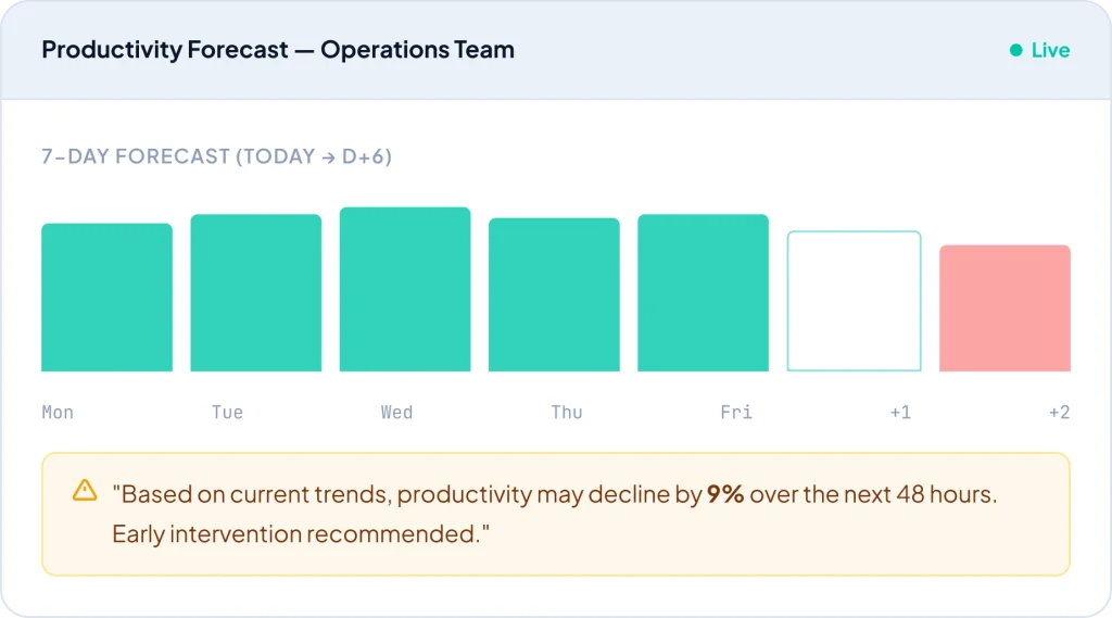 - 24–72 hour productivity forecasting per team